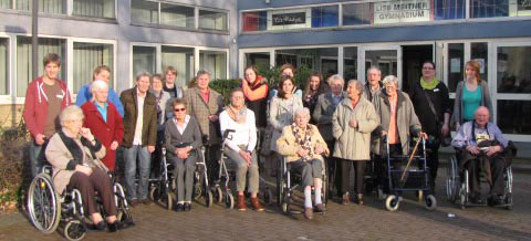Im Anschluss an die gemeinsame Aktion berichteten die aktiven Schüler/innen den Mitschüler/innen zunächst von den ersten Erfahrungen im Umgang mit Rollstühlen, aber – und das kann sich jeder denken – die besondere Aufmerksamkeit galt dem Bericht über die Kommunikation und das gelungene Miteinander der Generationen, das schon in Kürze bei weiteren gemeinsamen Aktionen eine Fortsetzung erfahren soll.