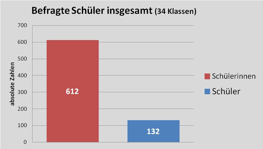 Aus dem Unterricht heraus ergab sich die Idee, eine Umfrage an unserer Schule zu diesem Thema durchzuführen und die Ergebnisse als Vergleich heranzuziehen. Wir haben alle Klassen außer den z.Zt. nicht anwesenden Fachschulklassen FSP/B 1 und 2 sowie der HEP/B befragt. Es waren insgesamt 34 Klassen.