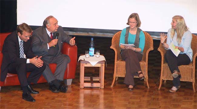 In der anschließenden Fragerunde, in der das Publikum zu Wort kam, wurde das Thema Bildungspolitik ganz konkret: Wie viel Bafög kriege ich, wenn schon zwei Geschwister studieren? Kann es nicht ein Bafög für alle geben? Was ist, wenn ich zu wenig Bafög bekomme, meine Eltern mir aber nicht weiterhelfen können? Hier erinnerte Pofalla an das elternunabhängige Bafög, dass allerdings nur unter besonderen Bedingungen bewilligt wird. Hendricks antwortete, dass man auch daran denken solle, dass die früh Erwerbstätigen das Bafög mit ihren Steuern finanzieren. Nach Politikverdrossenheit sah der Redebedarf der Schüler und Schülerinnen jedenfalls nicht aus.