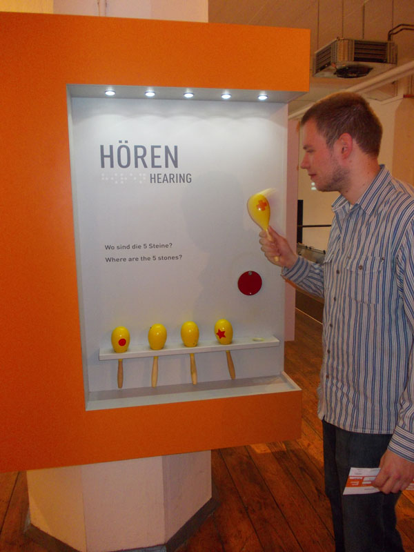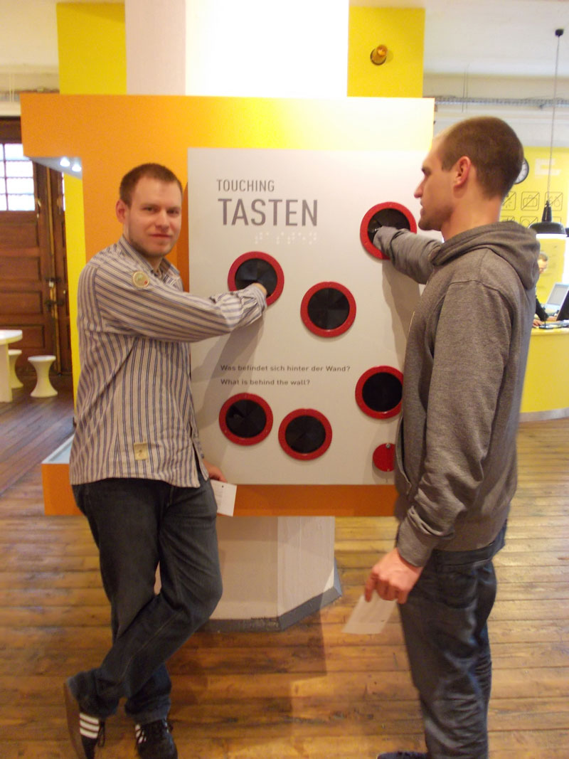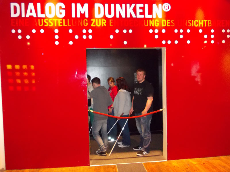 Intensive Wahrnehmungserfahrungen ermöglichte der Besuch von „Dialog im Dunkeln“, wo wir von einem blinden Menschen durch durchgängig völlig dunkle Räume mit Düften, Wind, unterschiedlichen Temperaturen, Klängen und Tönen, durch Parklandschaften und über Straßen in „befahrenen“ Großstädten bis in ein Café geführt wurden. Nicht wenige von uns hatten zu Beginn wackelige Knie, alle waren wir aber am Ende froh, „durchgehalten“ zu haben, um diese besondere Erfahrung machen zu können.