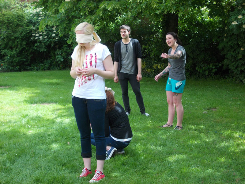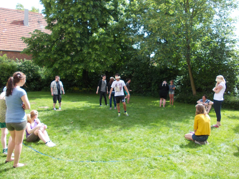 Drei außerordentlich nette und kompetente Teamer hatten für uns einen bunten Strauß an aktivierenden Methoden zur Auseinandersetzung mit den Themen Selbst- und Fremdwahrnehmung sowie Feedbackkultur gebunden. Genau diese Themen hatten wir uns vorher mit Blick auf unsere Situation als angehende Heilerziehungspfleger und somit als Auszubildende gewünscht.