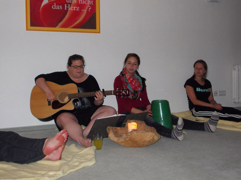 Bei all diesem Tun rückten wir als Klasse spürbar näher zusammen. Man lernte sich und die anderen bei den Arbeitseinheiten, aber auch in meditativen Einheiten und bei den Spiele- und Tanzabenden im Burgkeller und in den „chilligen“ Pausen bei herrlichem Sonnenschein auf den Rasenflächen rund um die Burg viel besser kennen. Eine besonders schöne Zeit des Miteinanders bescherte uns auch unsere Mitstudierende Vivian mit ihrer Gitarre. Neben Liedern zum Mitsingen gab sie uns auch eigene Kompositionen im Balladenstil zum besten, bei denen so manche Träne floss. Auch das war uns in diesen Tagen spürbar geworden: Wir können miteinander lachen und weinen. Was kann es für eine Gemeinschaft Schöneres geben?