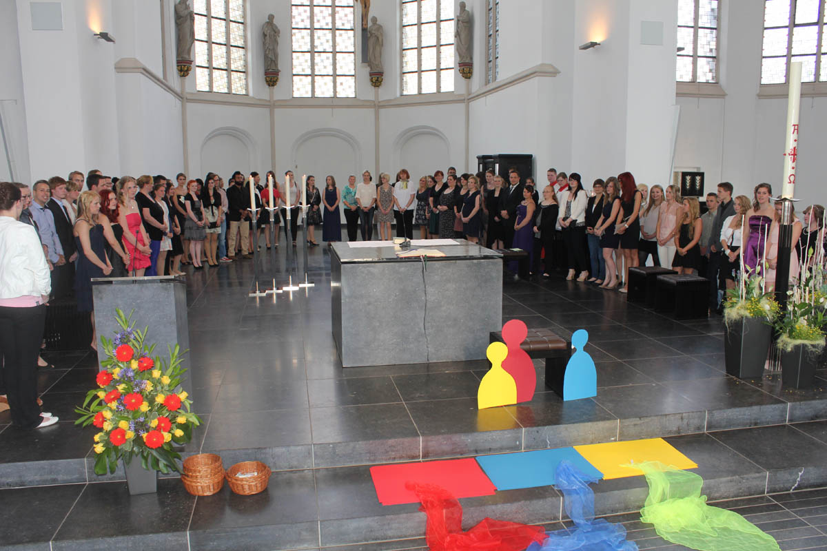 Rund 350 Schülerinnen und Schüler aus 10 verschiedenen Bildungsgängen wurden in diesem Jahr bei drei verschiedenen Entlassfeiern von der Liebfrauenschule verabschiedet. Dem festlichen Gottesdienst in der Maria-Magdalena-Pfarrkirche schloss sich die Entlassungsfeier in der Aula an, bei der die Schülerinnen und Schüler aus der Hand des Klassenlehrers bzw. der Klassenlehrerin ihre Zeugnisse erhielten. Es folgte der traditionelle Umtrunk im Pädagogischen Zentrum der Schule.