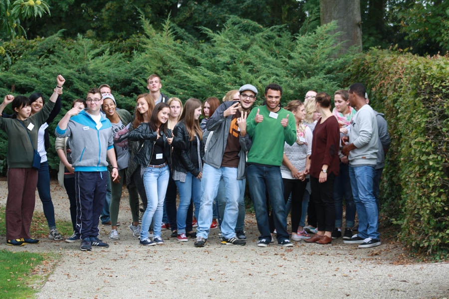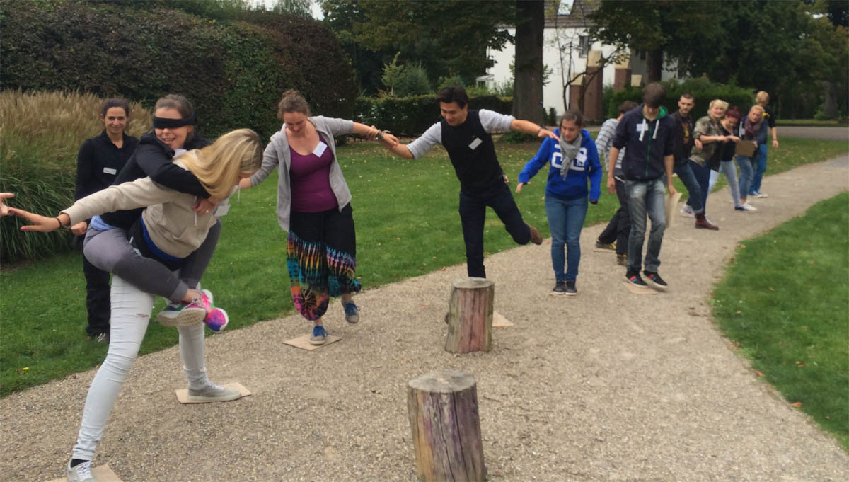 Gemeinsam mit zwei Klassen der Fachschule für Heilerziehungspflege des Hermann-Gmeiner-Berufskollegs in Moers und mit einem Dutzend Helfern des Internationalen Jugendgemeinschaftsdienstes (IJGD), wird ihnen das Ziel des anstehenden Projektes, nämlich Vorbehalte und Barrieren zwischen Menschen mit und ohne Behinderungen und zwischen Jung und Alt abzubauen, zunächst durch Interaktions- und Kooperationsübungen nahe gebracht.