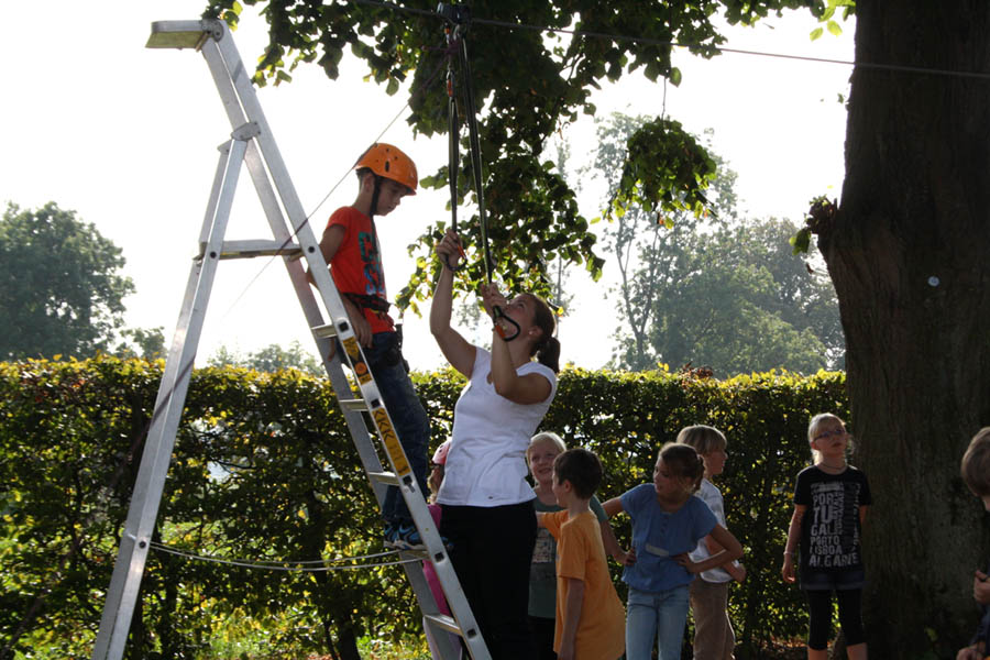Nach einem arbeitsfreien Wochenende treffen wir uns am Morgen des 15. September erneut auf dem Gelände von St. Bernardin wieder. Höchst motiviert starten wir in die zweite Woche, in der verschiedene Gruppen und Klassen die Stationen im Erlebnisgarten nutzen dürfen. Kleine und und große Abenteurer reisen an, um im beschaulichen Sonsbeck Spaß und Teamfähigkeit auf eine neue Art und Weise kennen zu lernen: beispielsweise Schüler/innen der Bönninghardt-Schule aus Alpen, der Mariengrundschule aus Kapellen, der Marienrealschule aus Xanten, Beschäftigte der CWWN-Werkstatt aus Moers, Bewohner/innen der Wohnanlage St. Bernardin u.v.m.