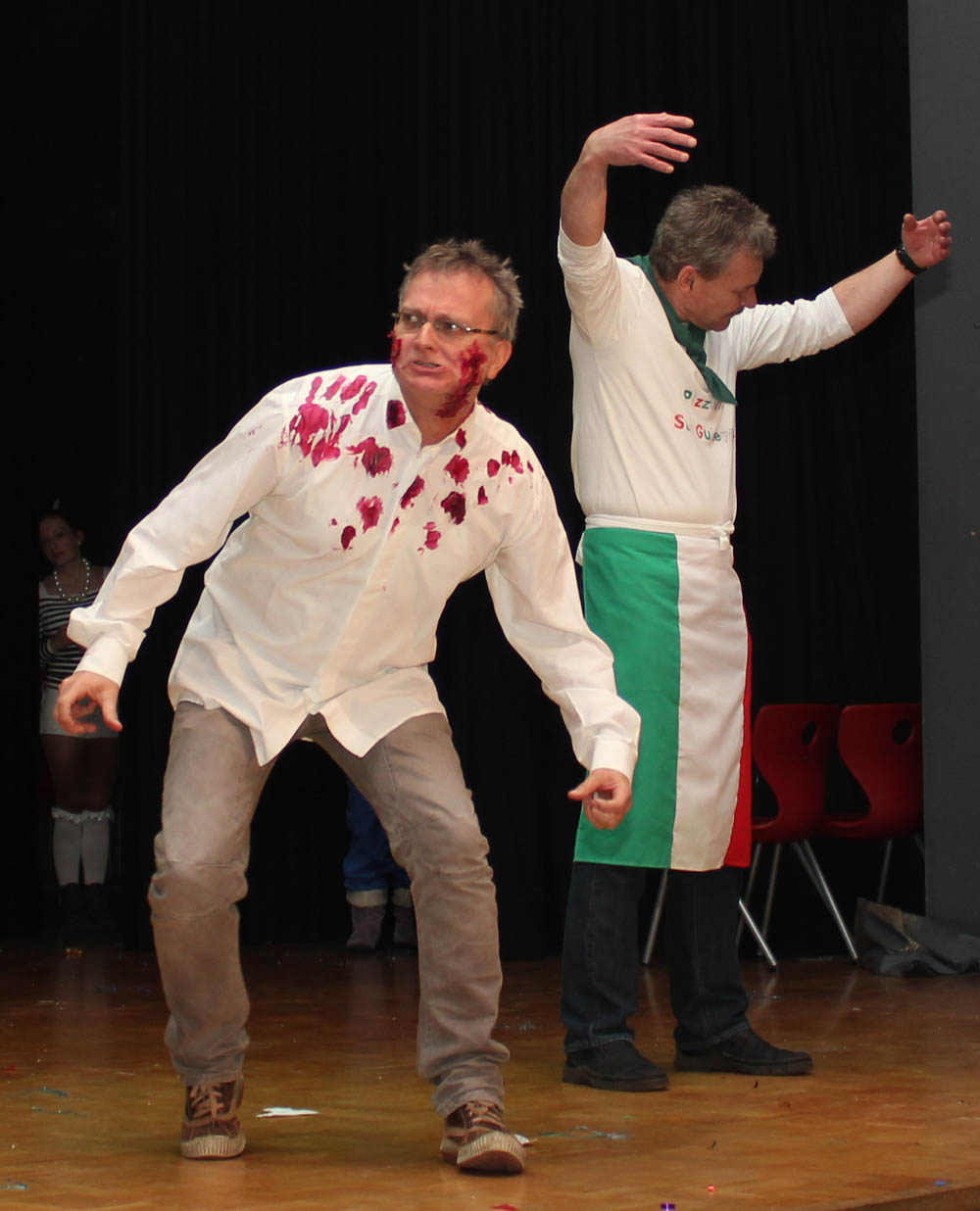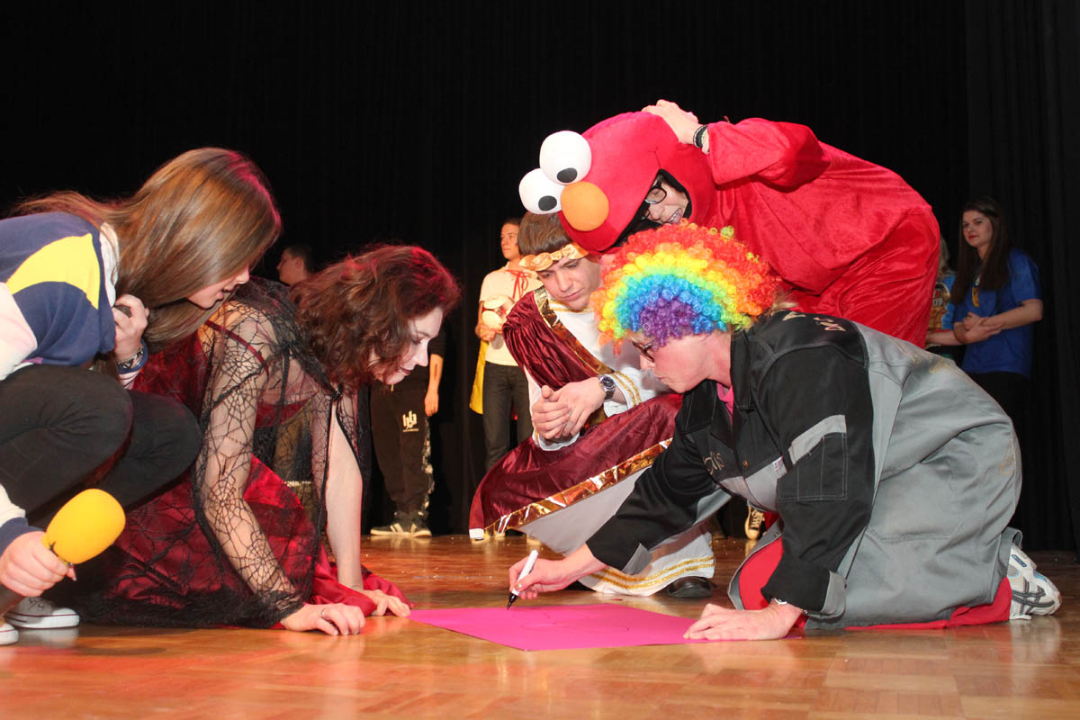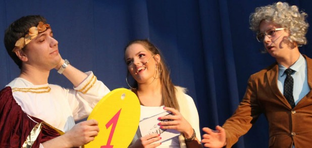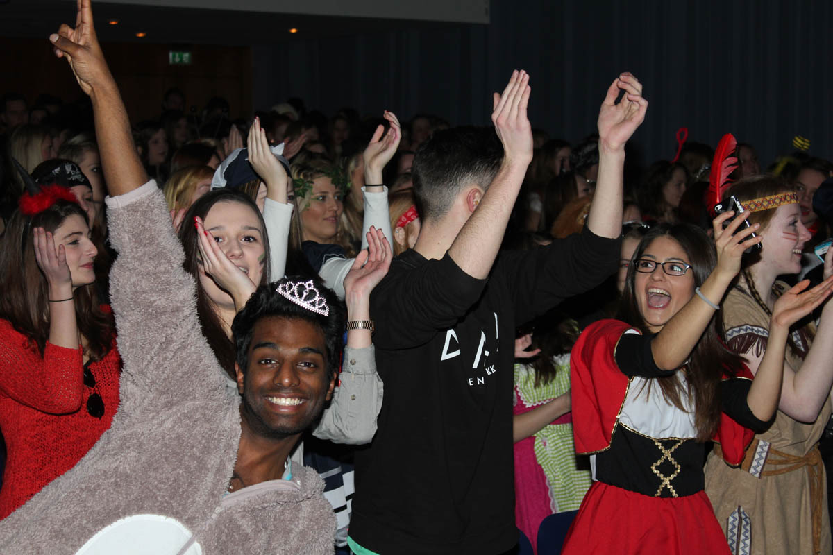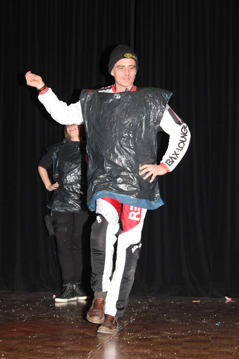 Nhroorrch – war er es wirklich? Der Bauch war da, das Herren-Täschchen auch, und selbst die Püllecken Doornkaat fehlten nicht. Dennoch: Es war nur ein Double von Horst Schlämmer, das gemeinsam mit seiner „Schnecke“ Schantall durch das bunte Programm der Altweiberfeier führte. Roderic Zaak aus der AH/12S2 und Laura Slodczyk aus der FH/12S2 waren in die Rollen geschlüpft – und auch an ihnen lag es, dass die Sause in der Aula, organisiert von der SV mit den Verbindungslehrern Frau Unger und Frau Hügens, mal wieder ein voller Erfolg wurde.